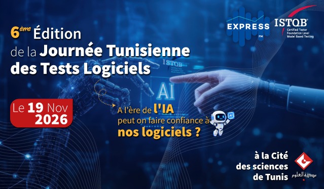 Le Tunisian Software Quality Board (TSQB) co-organise avec Express FM la sixième édition de la Journée Tunisienne des Tests Logiciels (JTTL 2026), qui se tiendra le 19 novembre 2026 à la Cité des Sciences de Tunis. Cet événement annuel incontournable réunit les professionnels du secteur IT (Product Owners, développeurs, testeurs, DSI, ingénieurs qualité…) ainsi que le monde académique (enseignants, chercheurs, étudiants) pour une journée riche en conférences, panels, workshops et rencontres B2B. La thématique de cette édition : « À l’ère de l’intelligence artificielle, peut-on encore faire confiance à nos logiciels ? » Des experts tunisiens et internationaux interviendront pour partager leurs visions, leurs retours d’expérience et les tendances clés dans les domaines du test logiciel, de l’automatisation, de la qualité logicielle et des certifications ISTQB. La JTTL 2026 s’inscrit dans la continuité des initiatives du TSQB visant à renforcer la culture de la qualité logicielle et à accompagner les transformations liées à l’IA au sein de l’écosystème IT. Public ciblé : Professionnels IT, experts QA, enseignants-chercheurs, étudiants en informatique et toute personne intéressée par la qualité logicielle et l’innovation technologique.